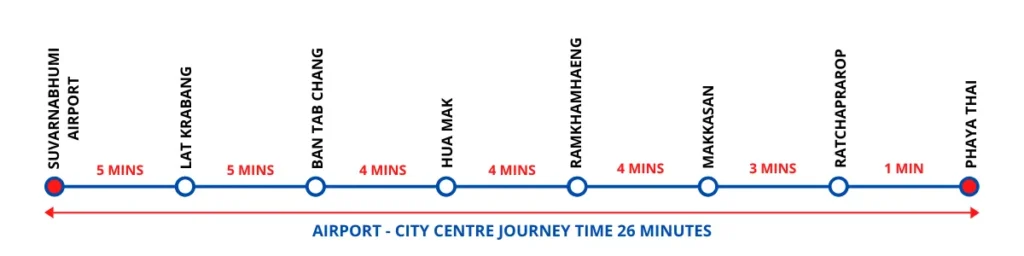 - Rejsetid: Cirka 30 minutter til endestationen Phaya Thai.